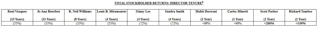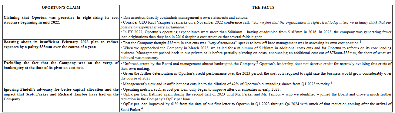 The attempts by the legacy Board members to take credit for these improvements are, in our view, part of a transparent effort to maintain their positions, despite a track record of poor total stockholder returns. The facts speak for themselves: the turnaround in Oportun’s operations is directly tied Findell’s engagement and the addition of Mr. Parker and Mr. Tambor.