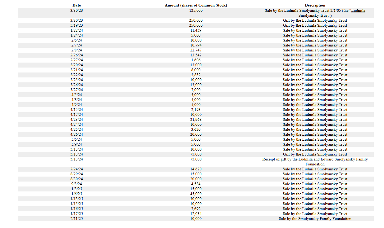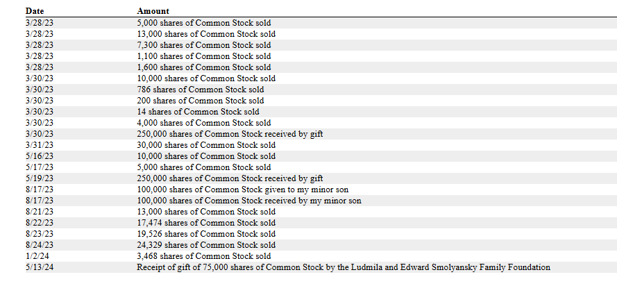 1 I disclaim beneficial ownership of (i) the 75,000 shares of Common Stock held by the Ludmila and Edward Smolyansky Family Foundation (the “Ludmila and Edward Smolyansky Family Foundation”), (ii) the 500,000 shares of Common Stock held by Smolyansky Family Holdings, LLC (“Smolyansky Family Holdings”), except to the extent of any pecuniary interest I have therein, and (iii) the 100,000 shares held by my minor son.