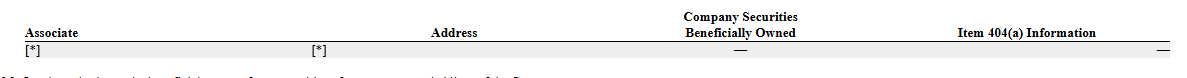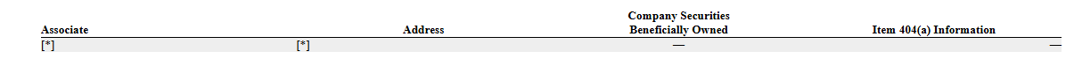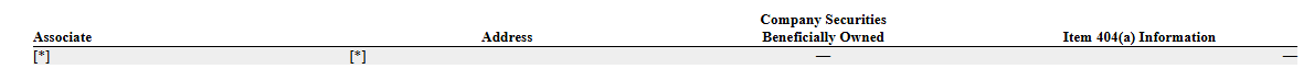 The name and address of, beneficial ownership of Company securities by, and information required by Item 404(a) of Regulation S-K with respect to, each of my associates, within the meaning of Rule 14a-1 under the Exchange Act, is set forth below: